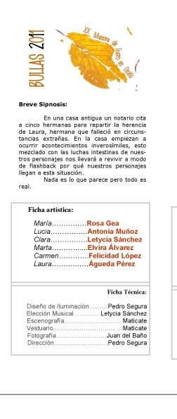 Es la quinta vez que el grupo de teatro integrado por mujeres del pueblo de Bullas y La Copa vuelve a ponerse en manos de Segura, que como apunta el autor y director "este trabajo tiene la particularidad que el texto está hecho a medida de las actrices que lo van a interpretar. 'La Herencia' es un ejercicio teatral que sigue la línea de dirección que he llevado estos años con la compañía Maticate, veremos en este espectáculo interpretaciones mas ajustadas al naturalismo, a diferencia de anteriores montajes".