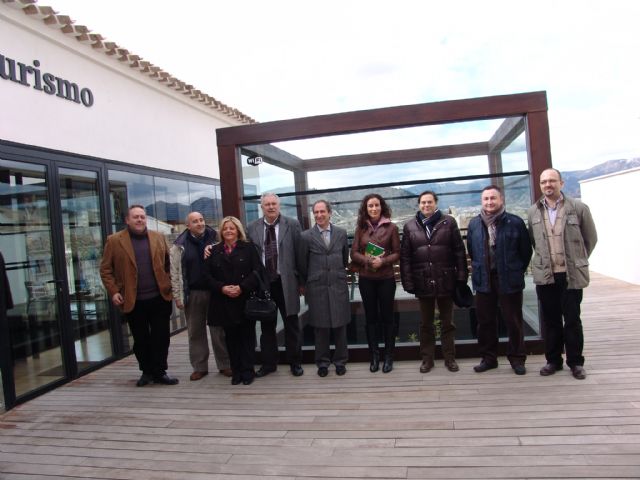 El Director General del Servicio de Empleo y Formación (SEF), Ginés Martínez, junto a los alcalde de Bullas y Cehegin, Pedro Chico y José Soria, respectivamente, y el Concejal de de Empleo de Caravaca de la Cruz, Salvador Gómez, visitaron ayer el Taller de Empleo de la Vía Verde guiados por la directora del Taller de Empleo, Josefina Martínez.