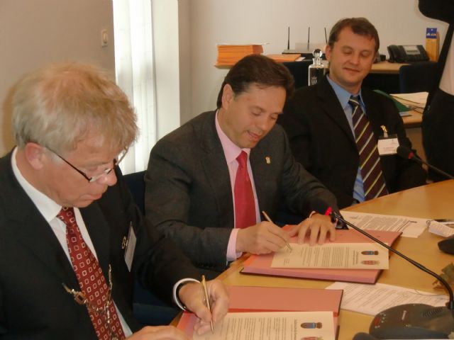 Tras la firma de los alcaldes, el de Bullas hizo entrega de una placa conmemorativa y el de Groesbeek entrego una botella y dos copas para el vino simbolizando un brindis entre los dos pueblos. Acto seguido, un representante de la ciudad de Bosa en Cerdeña (Italia) entregó al Alcalde un presente de su municipalidad sentando, de esta manera, las bases para el próximo hermanamiento entre Bullas y esta localidad sarda.