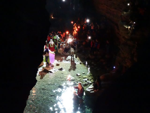 Unas mil personas se dieron cita ayer en el Salto Usero para ver a La Mora que bajó del monte Castellar para bañarse en las aguas del Río Mula en la noche mágica de San Juan.