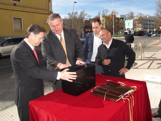 El consejero de Fomento, Obras Públicas y Ordenación del Territorio, Francisco Bernabé, junto con el alcalde de Bullas, Pedro Chico, puso hoy la primera piedra de las obras de remodelación de la avenida de la Libertad de la localidad, que cuentan con un presupuesto de 360.000 euros y serán financiadas en un 90 por ciento por la Comunidad Autónoma.