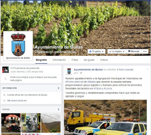 El Ayuntamiento de Bullas se pone al día con las redes sociales. Recientemente, el consistorio ha creado perfiles en Twitter y Facebook, con el objetivo de mejorar la política de comunicación y promoción exterior del municipio.