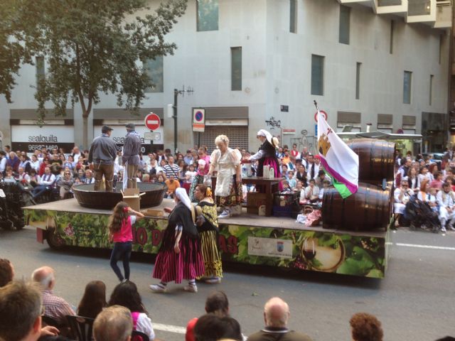 Participando en el desfile iba la Peña Huertana 'La Uva', en representación de Bullas, que fue el municipio invitado por la Federación de Peñas Huertanas de Murcia. Haciendo alarde de su música y bailes iban acompañados de una carroza con motivos dedicados al vino, con pisaúvas incluido.