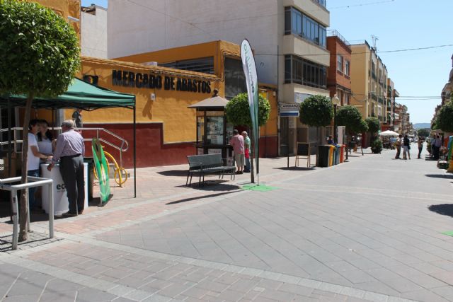 Con motivo del Día Mundial del Medio Ambiente, la concejalía que dirige Juan Valera, ha organizado este acto junto con Ecoembes para, además, informar de una nueva campaña 'Pégate al Reciclaje' que te invita a cuidar nuestro entorno, teniendo premio por ello. En el mismo stand de Ecovidrio, los monitores han repartido pegatinas para que todo aquel que recicle rellene con sus datos personales y la coloque en la bolsa del cubo amarillo para, después, mediante sorteo poder optar a uno de los premios que la Región de Murcia y Ecoembes regalan como viajes o kits de playa.