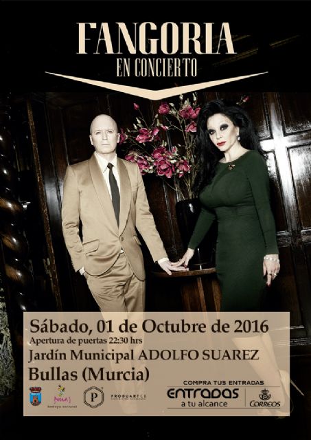 Las entradas para el concierto de Fangoria que actuará en el jardín municipal 'Adolfo Suárez' de Bullas a las 12 de la noche el sábado 1 de octubre están desde hoy a la venta en el Informajoven y en la Oficina de Turismo, situada en el Museo del Vino, a un precio de 15 euros.