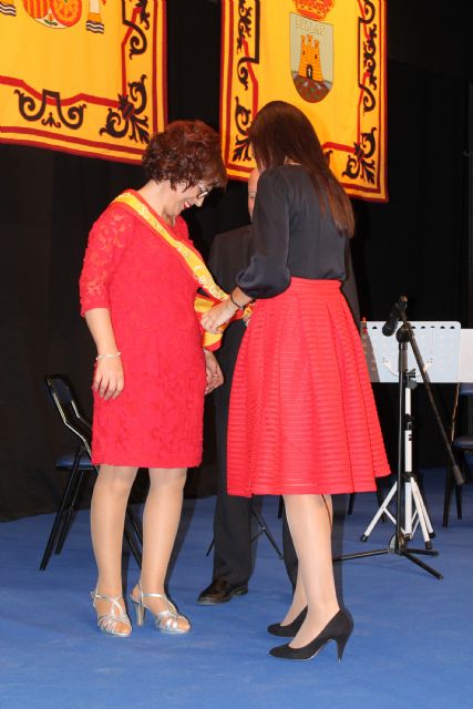 El acto que se celebró en el auditorio de la Casa de Cultura tuvo dos momentos destacados, uno, la imposición de bandas a las damas de las peñas de La Rosarico, La Cebolla, La Barrecha y la Bota, y, dos, el momento del pregón.