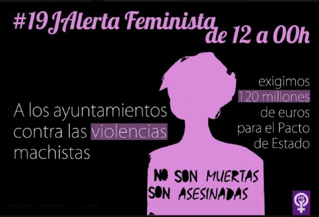 "Os animamos a haceros presentes en nuestro Ayuntamiento el próximo 19 de Junio a partir de las 12:00, POR ELLAS, POR NOSOTRAS, POR LAS QUE YA NO ESTÁN, POR LAS QUE NO PUEDEN ALZAR LA VOZ, POR TUS HIJAS, POR TU NIETAS, POR TODAS, BASTA YA!!! SUMATE!! #19JAlertaFeminista #19JVamospor Todas." señala al respecto la Concejal Chari Martínez.