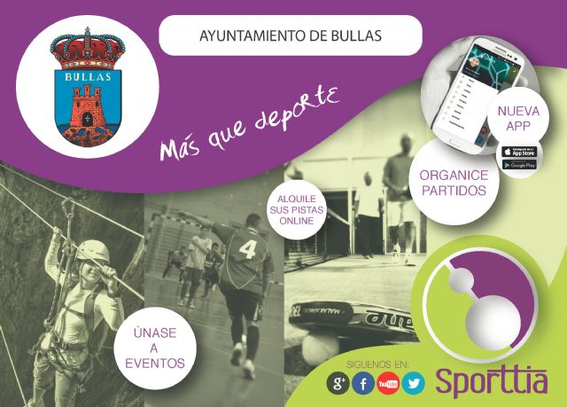 Desde hoy mismo es posible alquilar online pistas deportivas en Bullas y para hacerlo hay tres vías: a través de la página web municipal, en el apartado Trámites ( Reserva de instalaciones; accediendo a http://bullas.sporttia.com o instalando la app 'Sporttia' de Google Play Store para dispositivos Android.
