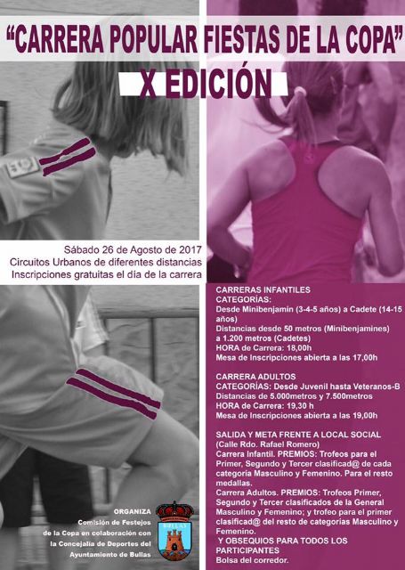 Ese mismo sábado, también tendremos la X edición de la "Carrera Popular Fiestas de la Copa", destinada a todas las edades y con circuitos urbanos de diferentes distancias. Las inscripciones son gratuitas y se podrán realizar el mismo día de la carrera.