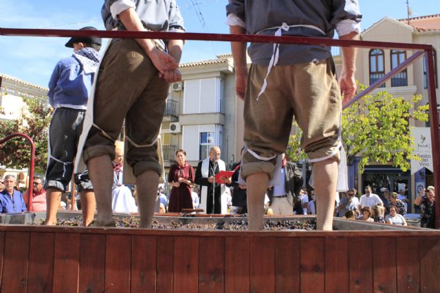 Acto seguido, tras la actuación folclórica de la peña La Uva, se puso en marcha la fuente del vino y después se procedió a la bendición del primer mosto. Fue el nuevo párroco, Tomás Álvarez Sánchez, el encargado de bendecir y pedir por una buena recolección de uva en estos días de vendimia.