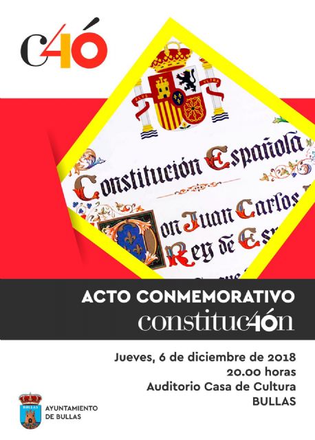 El próximo jueves, 6 de diciembre, se celebra en España el Día de la Constitución. Desde el Ayuntamiento de Bullas se han sumando a las celebraciones por su 40 aniversario.