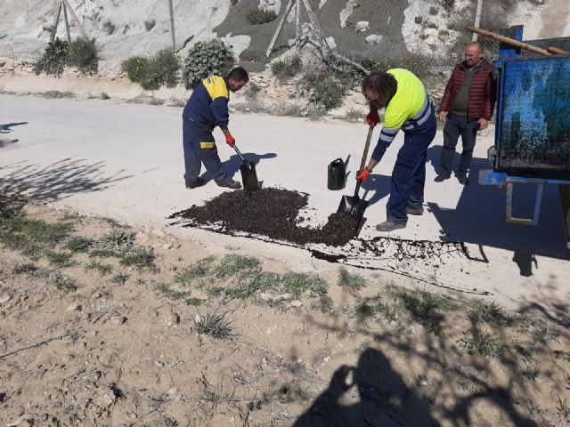 Los trabajos han consistido en lareparación de baches, aplicando aglomerado asfáltico para dejarlo apto al tráfico rodado. La actuación se centra en los caminos del término municipal de Bullas.