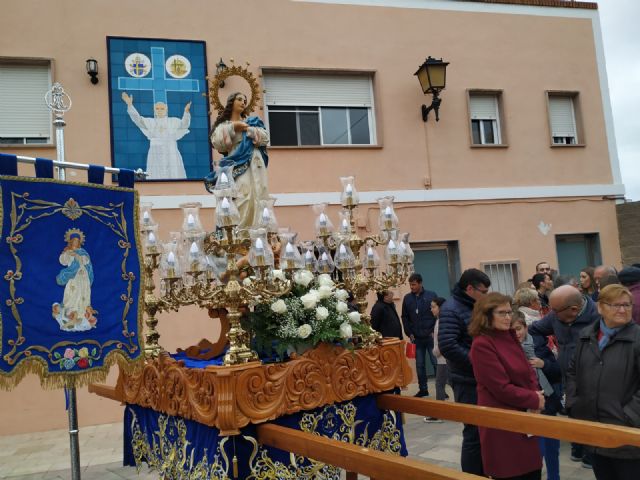 El miércoles 8 de diciembre, se celebra la solemnidad de la Purísima Concepción, con un pasacalles a partir de las 10 de la mañana con la música de la agrupación musical "Los Curros" y en su recorrido la Hermandad recoge a las hijas de María. A las 12 horas se oficia la eucaristía. Por la tarde, a las 18.30 horas, se realiza la procesión con la imagen de la Purísima Concepción y a mitad de la misma se disparará un luminoso castillo de fuegos artificiales.