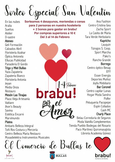 Sorteo especial San Valentín ´Brabu por el amor, el comercio de Bullas te quiere´