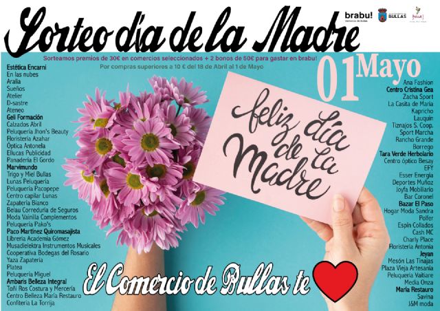 La Concejalía de Comercio del Ayuntamiento de Bullas, en colaboración con la Asociación de Comerciantes y Hosteleros de Bullas, ha puesto en marcha una nueva campaña de apoyo al comercio local con motivo de la celebración del Día de la Madre.