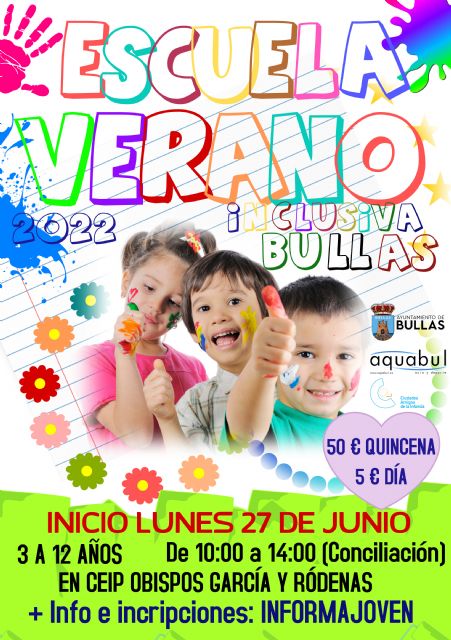 La Escuela contará con los monitores de la Asociación Aquabul que cada día realizarán manualidades, talleres y actividades con los niños y niñas de 3 a 12 años. Además, como en años anteriores la Escuela será inclusiva, adaptando los ejercicios a los pequeños y pequeñas con necesidades especiales.
