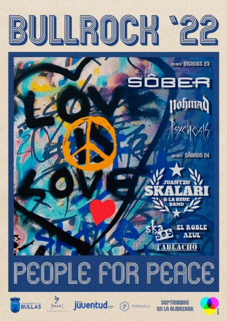 Los próximos días 23 y 24 de septiembre se celebra en el Centro Joven ‘La Almazara’ de Bullas una nueva edición del BullRock Festival, así lo ha anunciado la concejalía de Juventud del Ayuntamiento de Bullas. Dos noches de rock, metal y ska con entrada totalmente gratuita.
