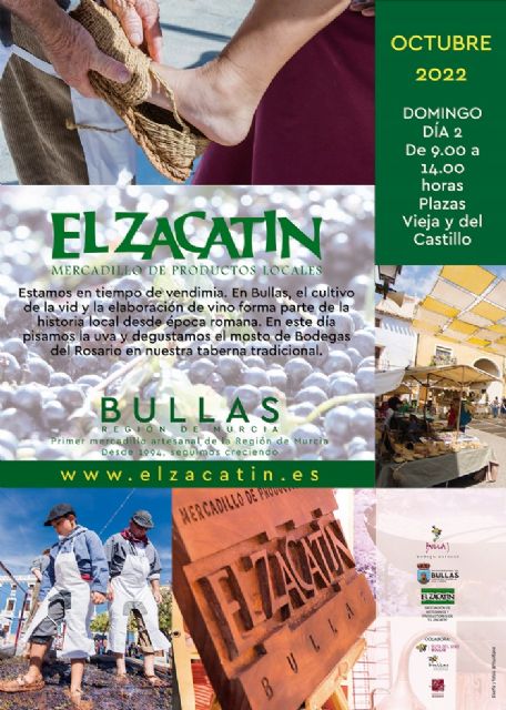 Estamos en tiempo de vendimia. En Bullas, el cultivo de la vid y la elaboración de vino forma parte de la historia local desde época romana. Por ello, este día, a partir de las 12.30 horas en la Plaza de España podremos ver la pisada de la uva y degustar el mosto de Bodegas del Rosario en una taberna tradicional que ambientarán el grupo de teatro local Matícate. Además, en un stand de la DO Bullas, podremos conocer los distintos vinos de las bodegas que integran la Denominación.