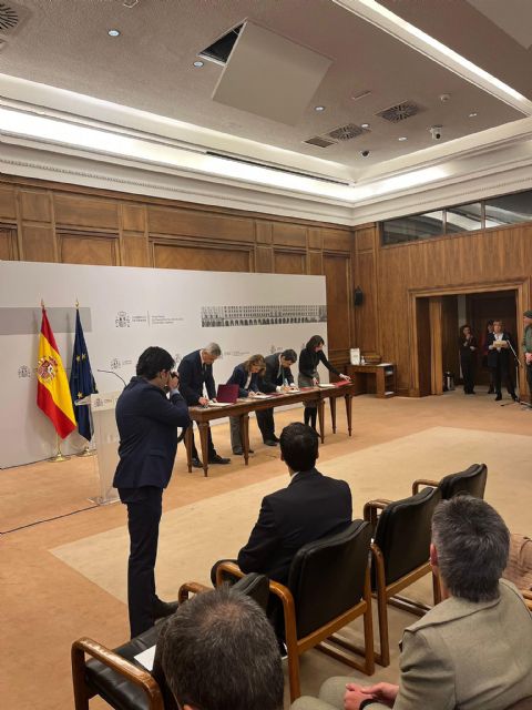 La Alcaldesa de Bullas, María Dolores Muñoz, ha firmado esta mañana en Madrid en el Ministerio de Transportes, Movilidad y Agenda Urbana los acuerdos para la ejecución de los programas de ayudas por los fondos europeos Next Generation para la rehabilitación de barrios de Bullas y La Copa.