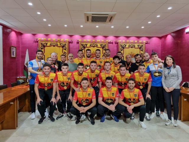 El pasado jueves el Ayuntamiento de Bullas de la mano de su alcaldesa, María Dolores Muñoz, y de su concejal de Deportes, Alfonso Sánchez, entregaron diplomas y medallas al equipo de fútbol de La Copa CF en señal de reconocimiento tras lograr en esta temporada el título de Liga y el ascenso a 1ª Autonómica.