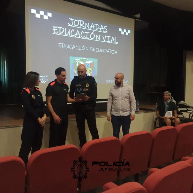 Al acto de clausura, celebrado el pasado jueves, 8 de junio, asistieron Alfonso Manuel Guirado, concejal de Seguridad Ciudadana en funciones y Tomás García, inspector - jefe de la Policía Local de Bullas, haciendo entrega de placas en reconocimiento a la labor realizada.