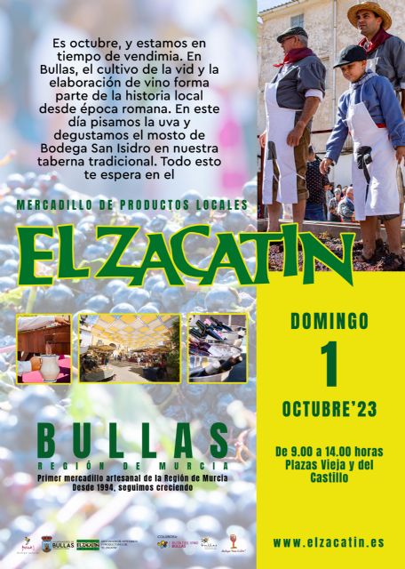 Es octubre y estamos en tiempo de vendimia, por lo que dedicará su actividad al mundo del vino. En la Plaza de España, se podrá ver la pisada de la uva y, además, se dará a degustar el mosto de Bodega San Isidro en una taberna tradicional. De otra parte, en el puesto central de la Plaza Vieja estará el Consejo Regulador de la DOP Bullas con los vinos de todas sus bodegas.