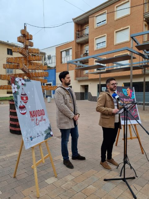 Esta mañana los concejales de Festejos y Cultura, David Madrid y Antonio José Espín, respectivamente, han presentado la programación navideña en la céntrica plaza Villa de Bullas.