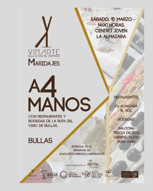 'A4 Manos' promete ser una vivencia para saborear, compartir y dejarse sorprender, en la que cada copa y cada plato contarán una historia única. Una cita que organiza la Ruta del Vino de Bullas, junto con el Ayuntamiento de Bullas, ineludible para los apasionados de la gastronomía.