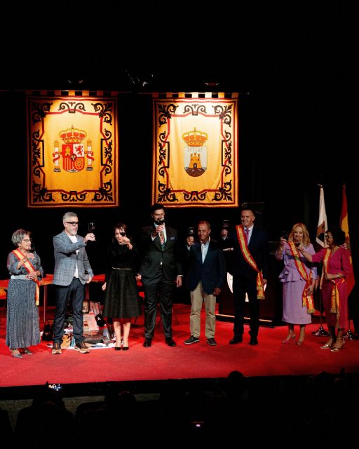 Para cerrar el acto, la Alcaldesa María Dolores Muñoz declaró abiertas las fiestas, llamando a vecinos y visitantes a compartir la alegría y la tradición que definen a Bullas. El momento quedó sellado con un brindis de vino local en el que participaron el pregonero, el Maestro del Vino 2025, las damas y damo de las fiestas, la propia alcaldesa y el concejal de Festejos.
