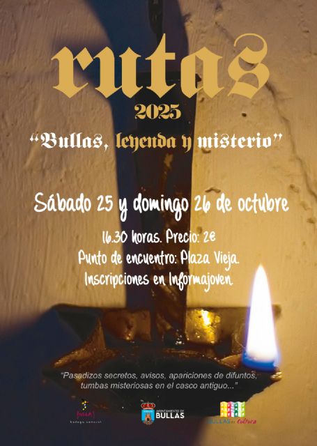 Con la llegada de Halloween y la festividad de Todos los Santos, Bullas se prepara para vivir un fin de semana lleno de historia, tradición y misterio. El Ayuntamiento, a través de la Concejalía de Cultura y Turismo, vuelve a organizar una de las actividades más esperadas del otoño: la ruta "Bullas, Leyenda y Misterio".