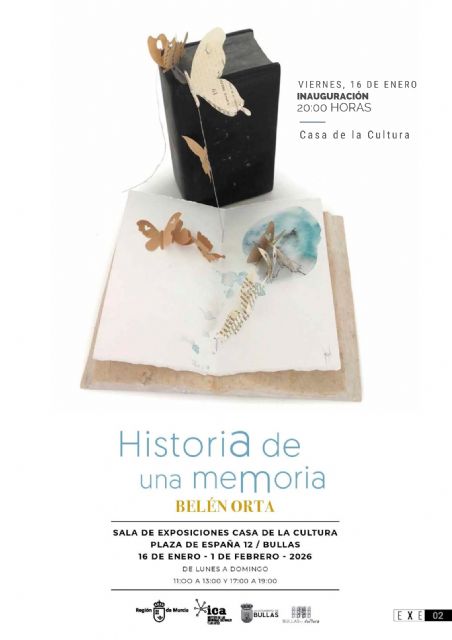 La exposición, que llega a Bullas gracias al Plan de Espacios Expositivos (EXE) de la Consejería de Turismo, Cultura, Juventud y Deportes, en colaboración con la Concejalía de Cultura del Ayuntamiento de Bullas, podrá visitarse hasta el próximo 1 de febrero en la sala de exposiciones de la Casa de la Cultura, ofreciendo al público la oportunidad de adentrarse en la memoria, la luz y el imaginario mediterráneo de Belén Orta.