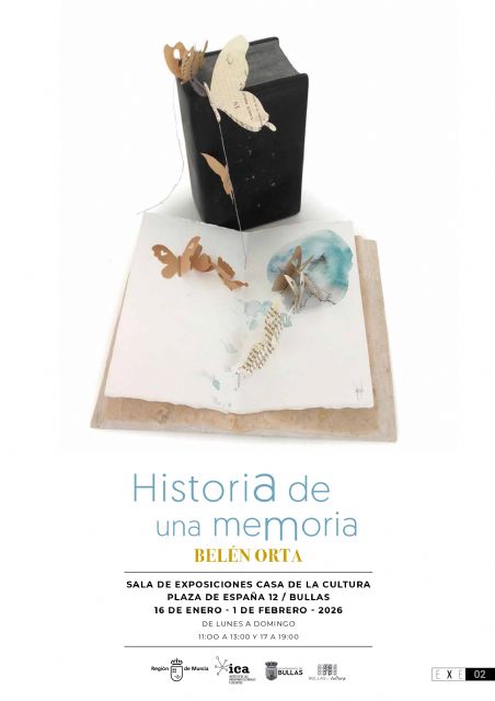 El Plan de Espacios Expositivos (EXE) de la Consejería de Turismo, Cultura, Juventud y Deportes comienza el año con la inauguración este viernes en la Casa de la Cultura del Ayuntamiento de Bullas de la exposición 'Historia de una memoria', en la que la artista cartagenera Belén Orta convierte libros heredados de su madre en esculturas cargadas de significado.