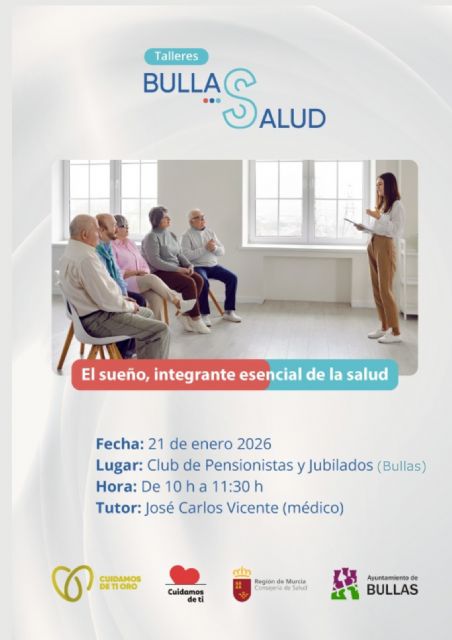 El próximo miércoles, 21 de enero, el Club de Pensionistas y Jubilados de Bullas acogerá un taller sobre salud impartido por el médico José Carlos Vicente, dirigido a las personas mayores del municipio.