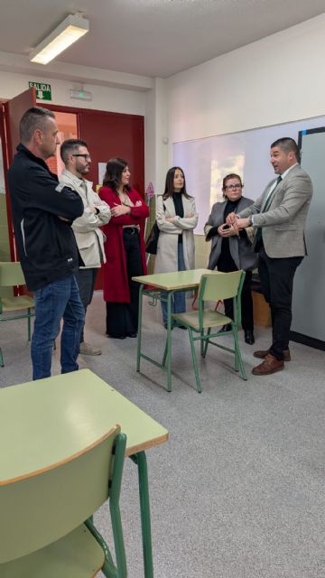 Durante la visita, el director general estuvo acompañado por el concejal de Educación del municipio, Antonio José Espín, la directora del instituto, Ascensión Blaya, así como por varios profesores del centro y concejales de la localidad. El recorrido incluyó las diferentes aulas y talleres donde se imparten ciclos formativos de peluquería, estética, soldadura, electricidad, fontanería y nuevas tecnologías.